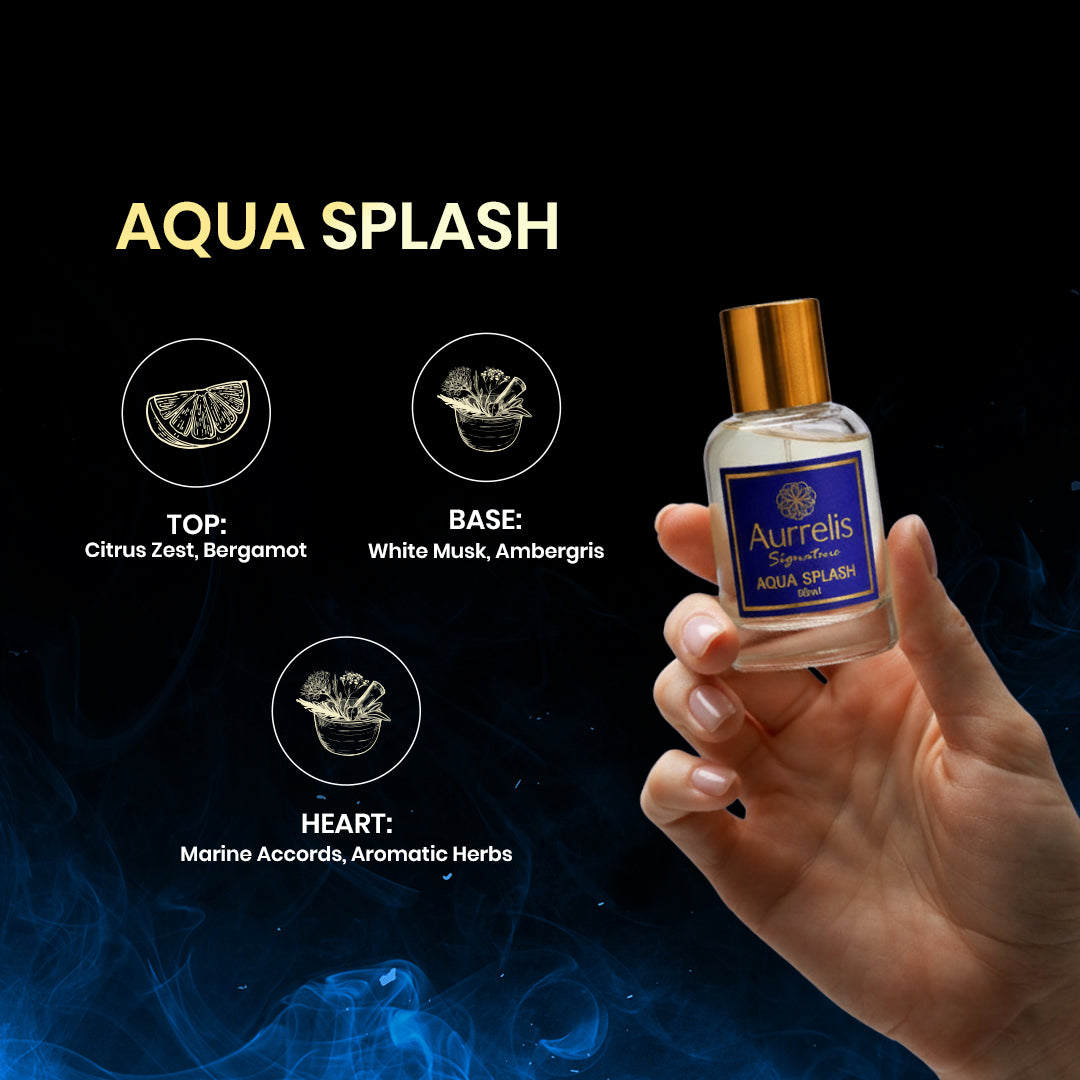 Aqua Splash captures the spirit of the open sea, where sparkling citrus and crisp apple awaken the senses. Cardamom and cinnamon bring a gentle warmth, balanced by watery notes that flow seamlessly into ambergris, driftwood, and musk. Fresh, modern, and endlessly invigorating.