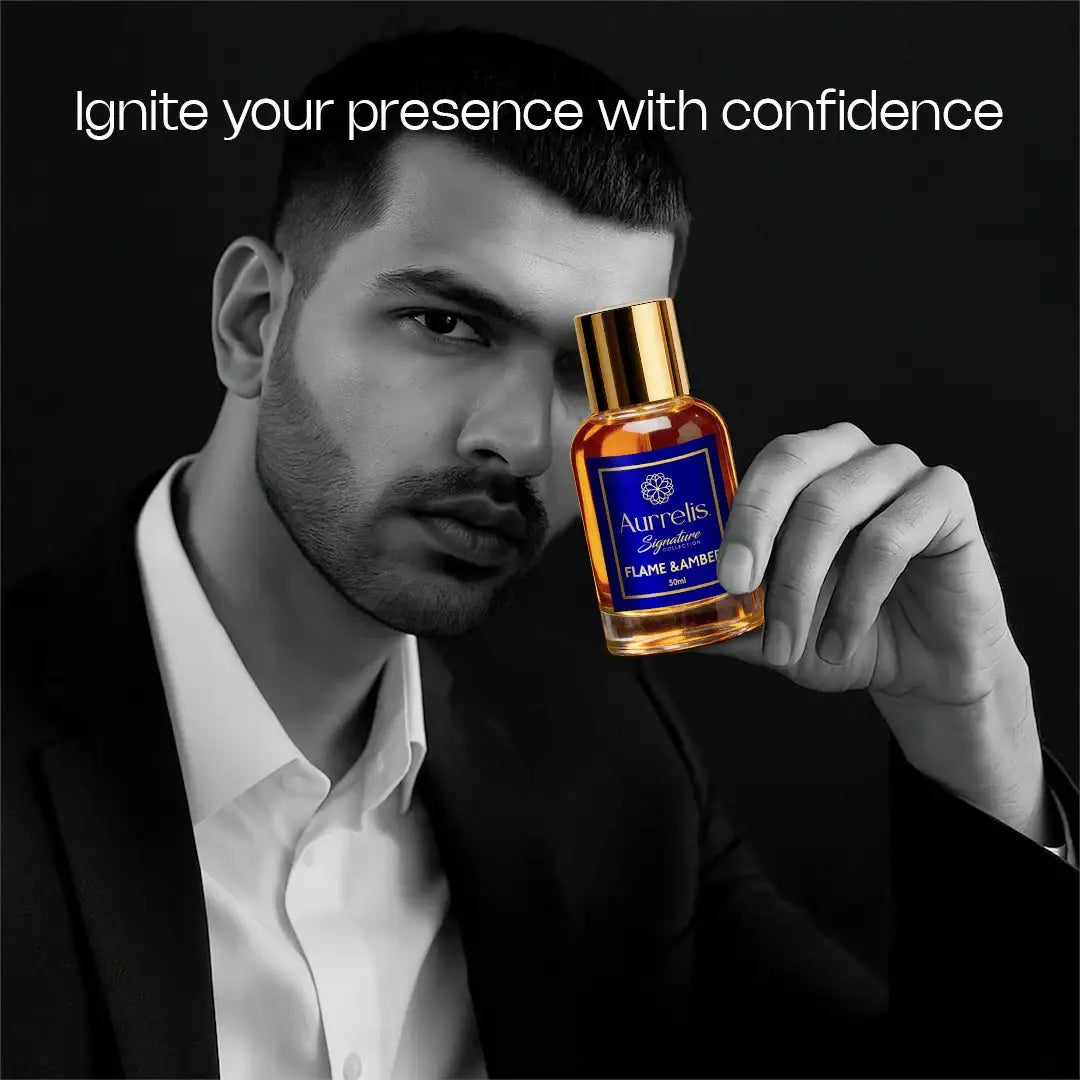 Aurrelis Signature Extrait De Parfum Combo Pack of 2 – Bold Essence & Flame & Amber| French-Inspired Fragrances (50 ml x 2)