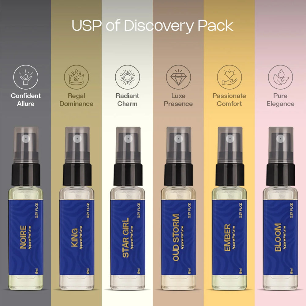 • A curated set of six distinctive fragrances designed for discovery and versatility