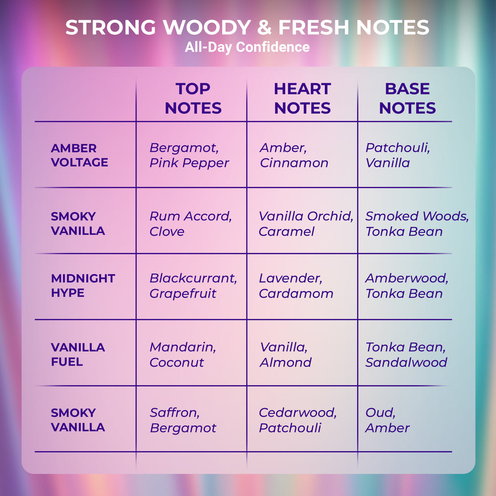 • Premium set of five warm, bold & intense unisex fragrances