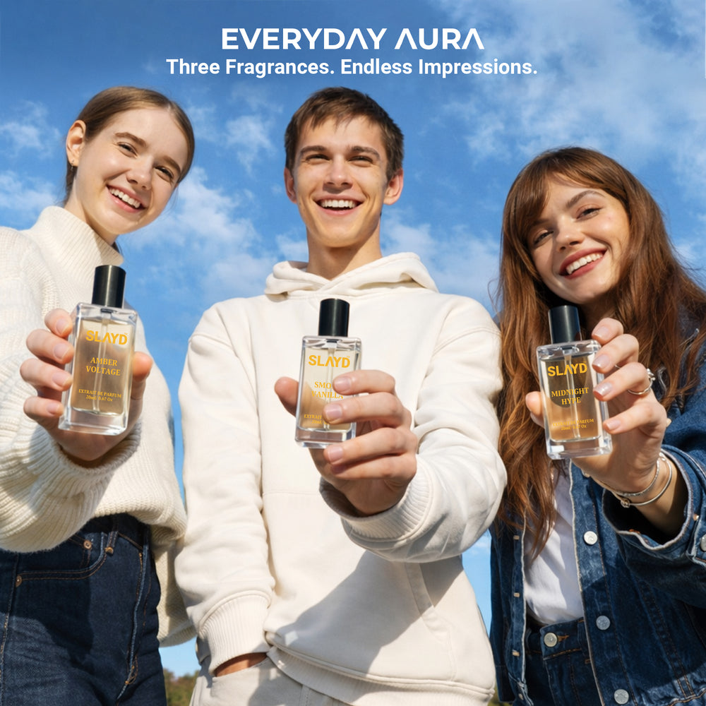 The Bold & Warm Signature Vault is crafted for those who love rich, intense, and unforgettable fragrances. This unisex collection brings together five powerful extrait de parfum blends—Amber Voltage, Smoky Vanilla, Midnight Hype, Vanilla Fuel, and Sacred Woods. Each fragrance carries its own warm personality: deep amber, smoky vanilla, spicy gourmand warmth, creamy vanilla woods, and dry woody calm. Perfect for evenings, winters, special occasions, and statement moments, this luxury set offers long-lasting performance with strong, confident character.