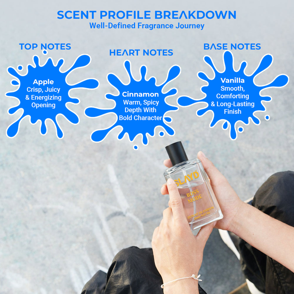 Boss Mode is confidence on autopilot. Fresh, warm, and effortlessly powerful, this extrait de parfum opens with a crisp apple note that feels clean, juicy, and instantly uplifting. As it settles, bold cinnamon adds a warm spicy kick—strong, charismatic, and unmistakably masculine. The dry-down of smooth vanilla brings balance, wrapping the spice in a soft, addictive warmth that stays comfortable and refined all day.