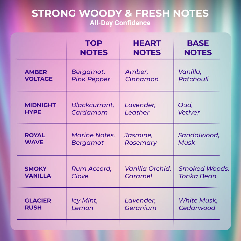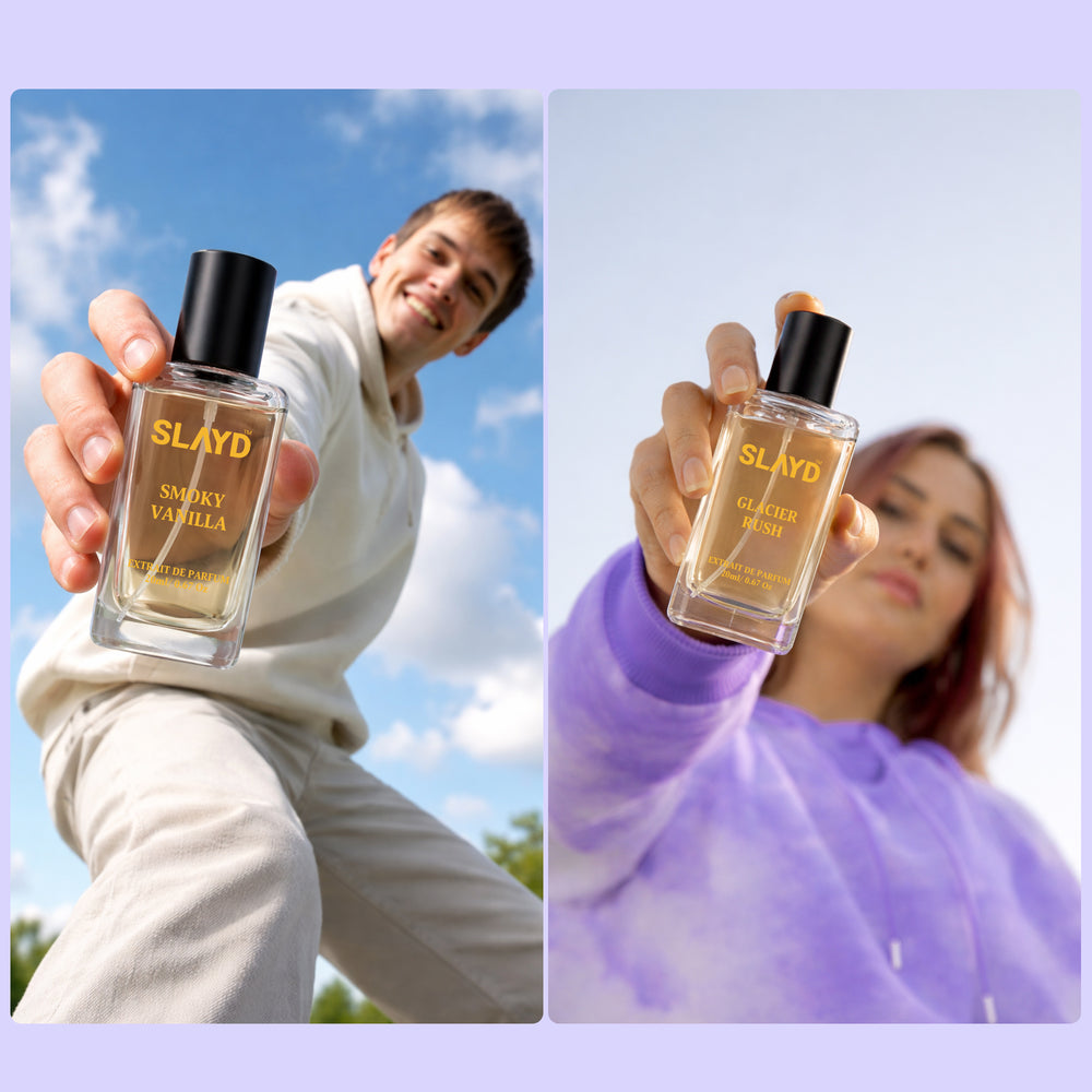 The Signature Discovery Vault is your gateway to the very best of SLAYD. This unisex collection brings together five of our most iconic fragrances—Amber Voltage, Midnight Hype, Royal Wave, Smoky Vanilla, and Glacier Rush. Each extrait de parfum offers a unique mood and personality, from bold amber warmth to spicy gourmand energy, clean aromatic freshness, smoky depth, and crisp woody clarity. Perfect for trial, gifting, or building your signature rotation, this premium discovery vault delivers long-lasting luxury in every spray.