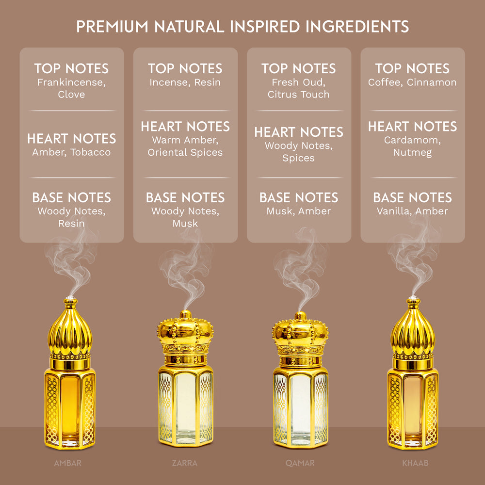 TAAHARA Premium Attar Combo Set - 4 x 6ml | Long Lasting Alcohol-Free Perfume Oil